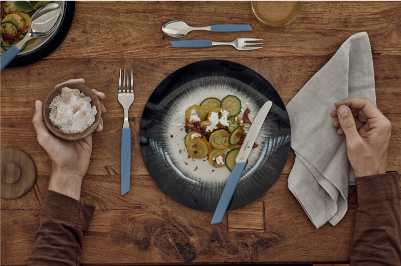 Серия Swiss Modern Extension привнесёт сдержанную элегантность на вашу кухню. Этот изысканный ассортимент столовых приборов изготовлен из прочной нержавеющей стали, пригодной для мытья в посудомоечной машине. Новые яркие тона и минималистичный чёрный цвет ручек с противоскользящим покрытием придают коллекции современную модную эстетику. Лезвия ножей сверхострые и предназначены для легкого нарезания, в то время как остальная часть ассортимента идеально подходит для непринужденной трапезы, которую можно разделить с семьей и друзьями.