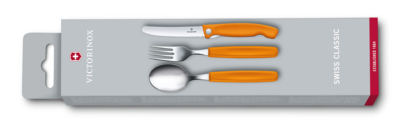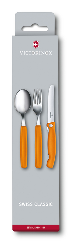 Набор из 3 столовых приборов VICTORINOX Swiss Classic: нож для овощей, вилка, ложка, оранжевый цвет