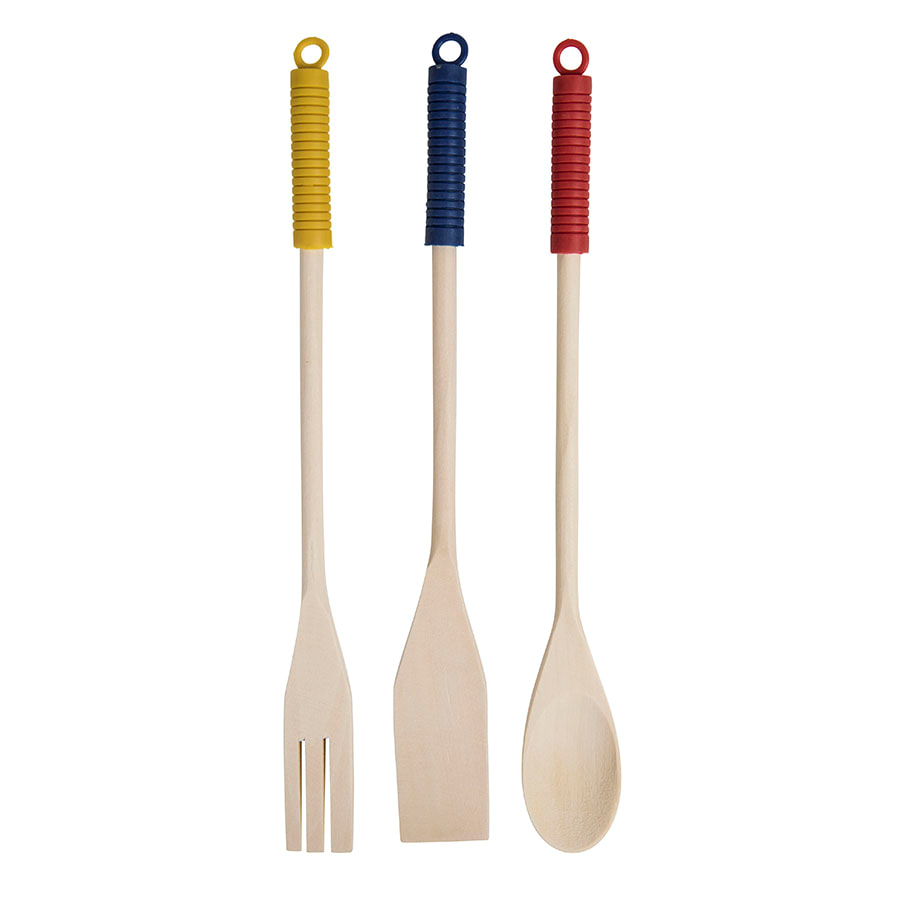 Набор деревянных лопаток KUSINA из клена станет незаменимым помощником на кухне. Посуда с антипригарным покрытием чувствительна к металлическим аксессуарам, тогда как мягкое дерево нежно и аккуратно взаимодействует с поверхностью. Лопатки помогут перевернуть стейк, поправить кекс в форме и сделать много других полезных вещей. Цветные силиконовые наконечники с ребристой поверхностью и удобной петлей позволяют ручкам не скользить в ладони на жаркой кухне. Использование деревянных лопаток имеет целый ряд преимуществ: • исключается вероятность получить ожог: у дерева низкая проводимость тепла, и в отличие от металла оно не нагревается; • они не царапают посуду, ведь дерево податливый и мягкий материал, что дает возможность использовать его для готовки в кастрюлях и сковородках с антипригарным и тефлоновым покрытием; • в отличие от пластика и прочих материалов, натуральный массив не выделяет токсинов и не влияет на вкус блюд. Отличный авторский сет из удобных предметов для кулинарных открытий и экспериментов!