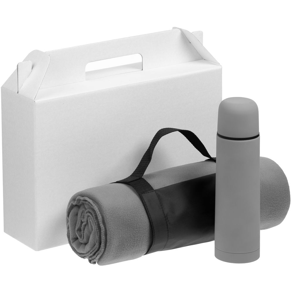 Материал: | плед - флис, плотность 180 г/м²; термос - нержавеющая сталь, 304 внутри, 201 снаружи, пластик, покрытие софт-тач; коробка - микрогофрокартон |