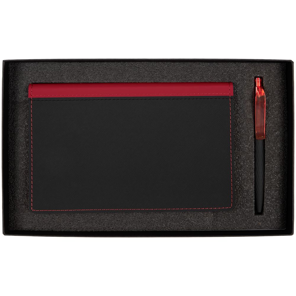 Стильный двухцветный ежедневник с гибкой обложкой и цветным обрезом, а также ручка в тон.