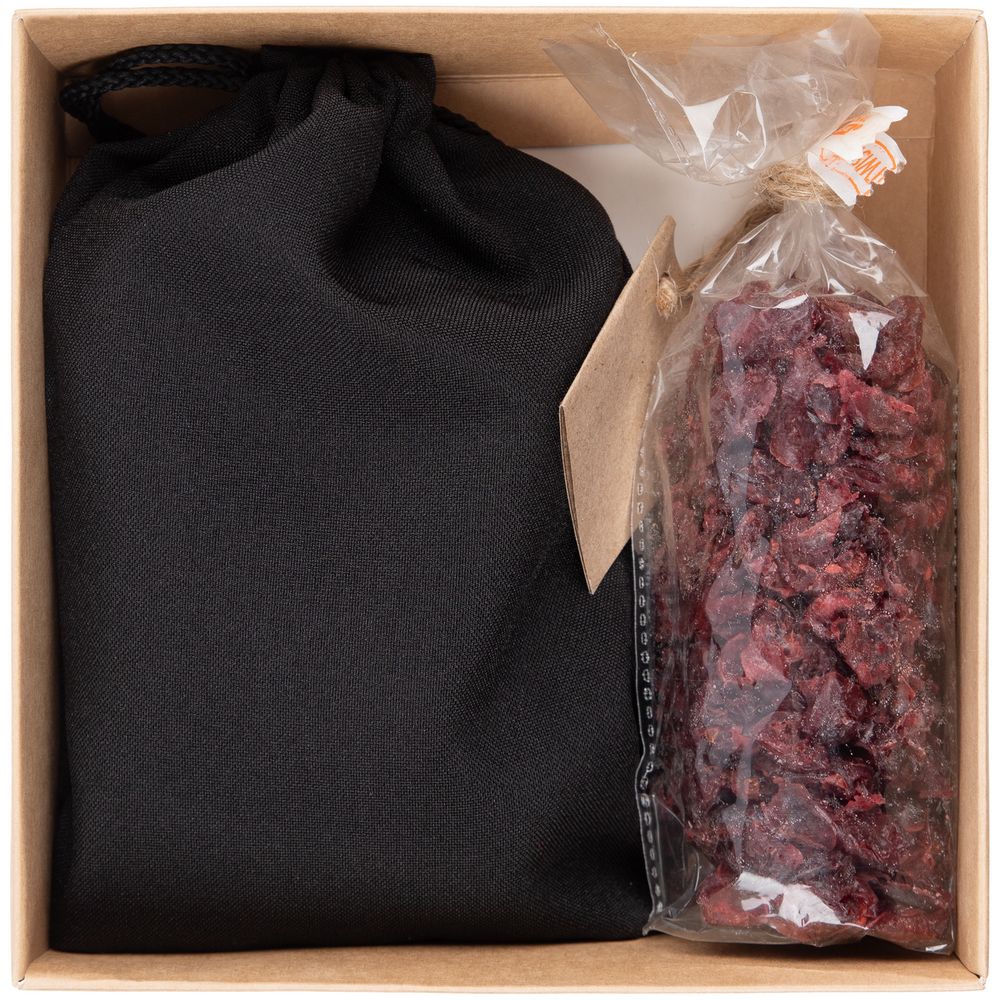 Omnom — небольшой подарочный набор для уютного и полезного чаепития. Черный крупнолистовой индийский чай в холщовом мешочке и сладкая сушеная вишня — запоминающийся знак внимания и деликатное выражение заботы.