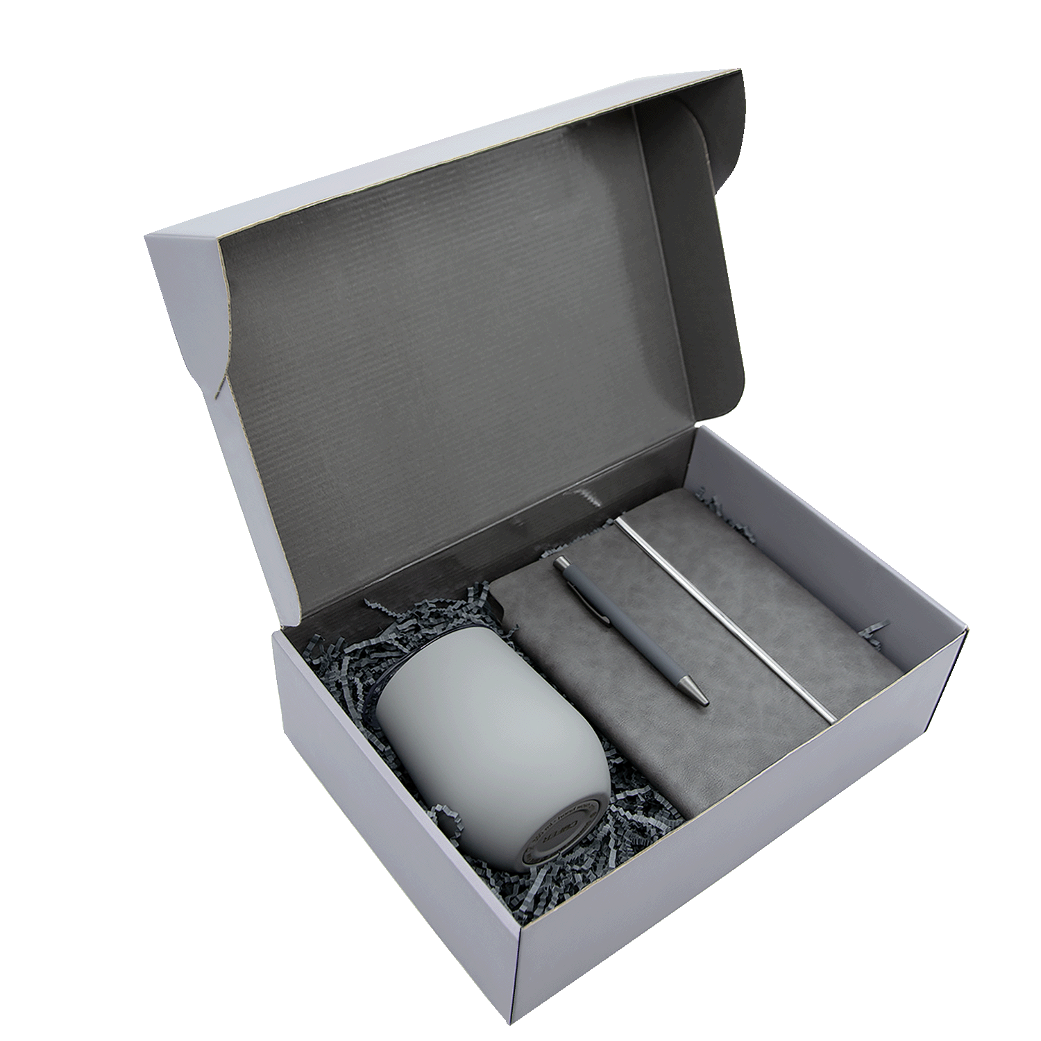 Набор Paper Box Grey – идеален для любого повода: корпоративного и личного. Набор состоит из инновационного ежедневника с приложением Bplanner с металлическим клапаном, кофера CO12S с покрытием софт-тач, ручки Direct и коробки HOT BOX.