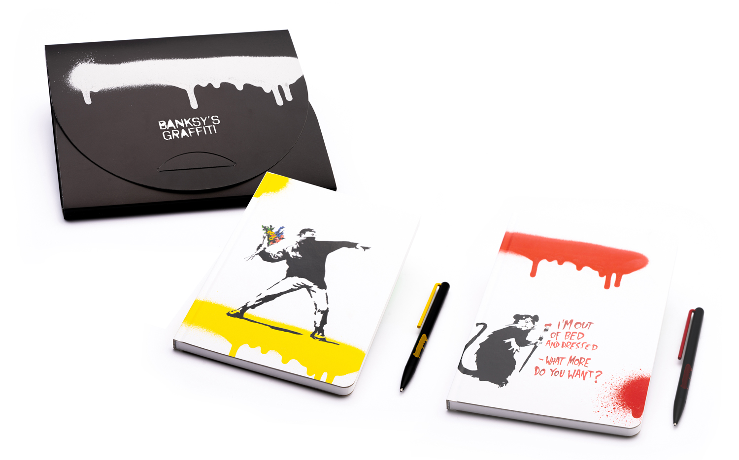 Набор из лимитированной коллекции с культовыми граффити Banksy Метатель цветов/ Rage, Flower Thrower. Шариковая ручка Pininfarina GrafeeX с цельным алюминиевым матовым корпусом черного цвета и ярко-желтым клипом. В ручке используется шариковый стержень CROSS® 8513, который выдвигается с помощью поворотного механизма. Длина ручки 15,2 см, диаметр 0,8 см, вес 26 гр. Тетрадь с листами из каменной бумаги размером А5 (14х21 см) содержит 64 листа в линейку. Белая твердая обложка с покрытием soft-touch фиксируется черной резинкой. Листы сделаны из каменной бумаги, экологической альтернативы обычной целлюлозной бумаге, которая не требует вырубки деревьев, использования воды и агрессивных химических веществ, тем самым защищая окружающую среду. Она состоит из 80% камня (карбоната кальция) и на 20% из связующего его нетоксичного полиэтилена высокой плотности (HDPE). Это бумага нового поколения с уникальными характеристиками. Каменная бумага на 100% водоотталкивающая, ее можно мыть. Жидкости, включая масло, не изменяют ее структуру, поскольку она не содержит древесных волокон, которые поглощают жидкости, в следствие чего традиционная бумага покрывается пятнами, деформируется и разрушается. Каменная бумага устойчива к разрыву, что также способствует ее долговечности. Она имеет приятный бархатистый эффект и не отражает свет. Плотность бумаги 140 гр/м2. Сделано в Италии.