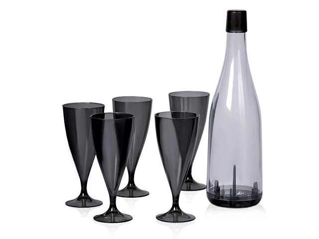Бокалы упакованы в пластиковую бутылку со съёмным дном, которую удобно брать с собой на пикники.