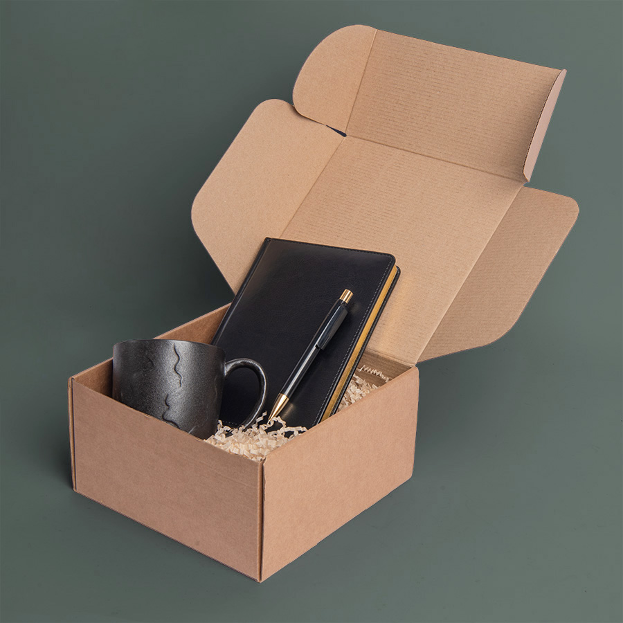 Набор подарочный DARKGOLD: кружка, ручка, бизнес-блокнот, коробка со стружкой