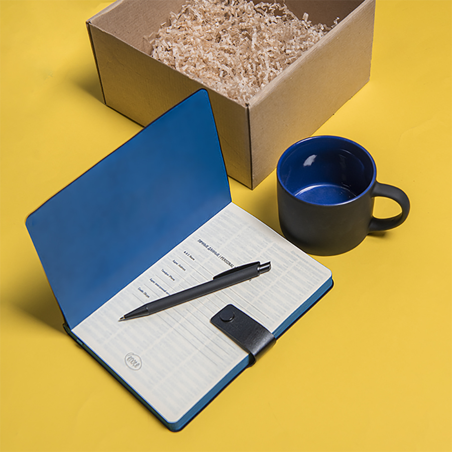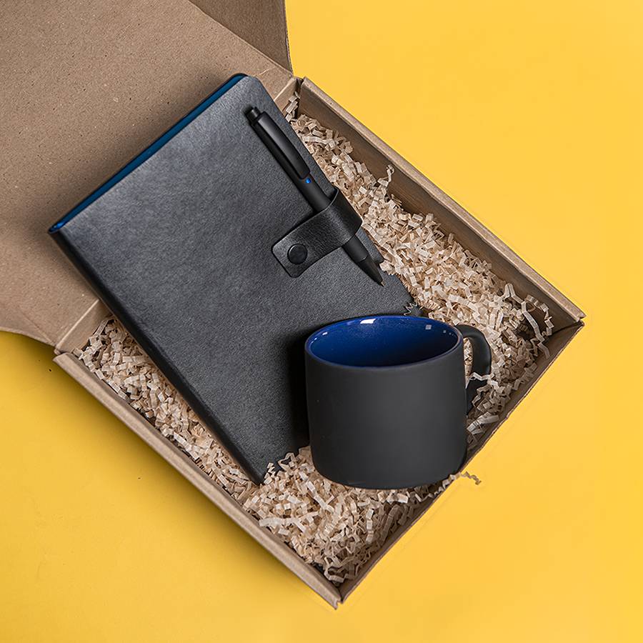 Набор подарочный DYNAMIC: кружка, ежедневник, ручка, стружка, коробка, черный/синий