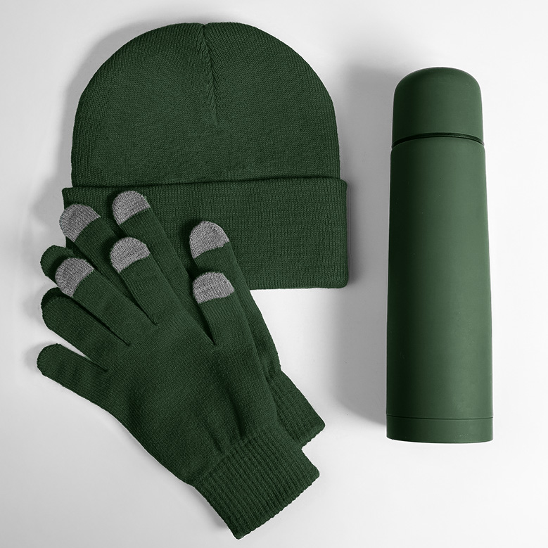 Набор подарочный GET WARM: перчатки, шапка, термос; зеленый