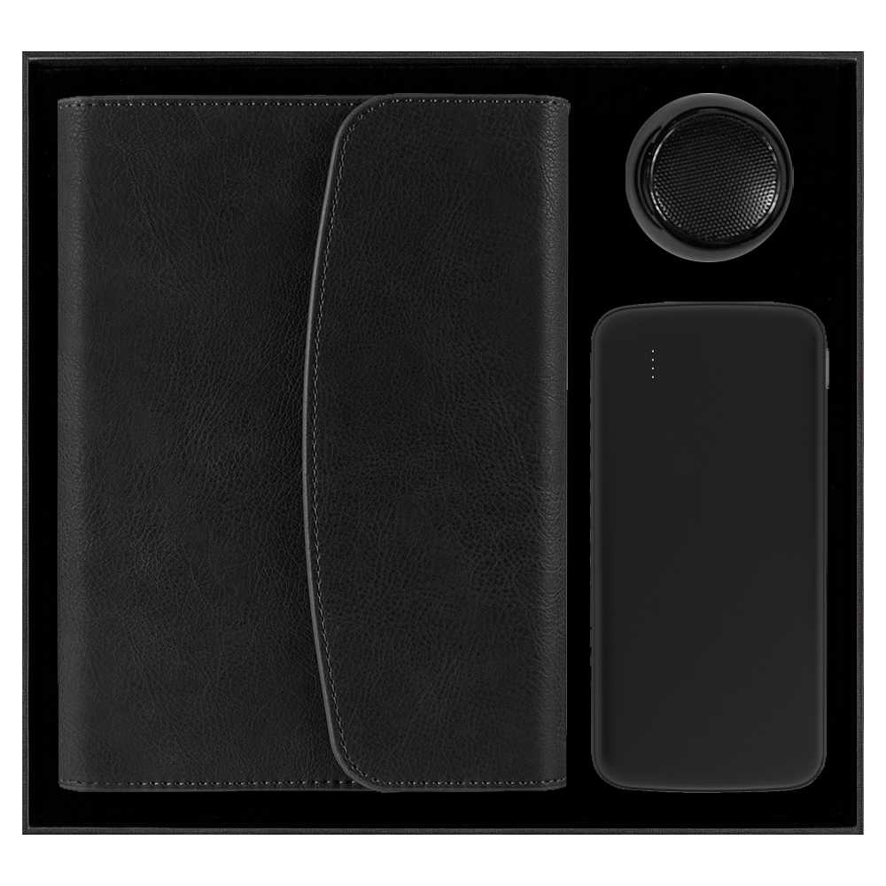 Современное решение для тех, кто ценит функциональность, стиль и универсальность. Лаконичный дизайн в черной палитре подчеркивает статус и уверенность, а состав набора отвечает потребностям динамичного образа жизни. Элегантная упаковка с индивидуальной вырубкой и мягким покрытием превращает этот комплект в готовый презент, не требующий дополнительного оформления.