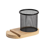 Как правило, на рабочем столе нам всегда не хватает места, т.к. каждый из однофункциональных предметов претендует на полезную площадь. Вашему вниманию предлагается дуэт, в котором объединены 2 функции. Это подставка для телефона из бамбука и металлический стакан-подставка под пишущие принадлежности. Комплект изготовлен из природных материалов. Позволяет организовать свое рабочее пространство стильно и компактно.
