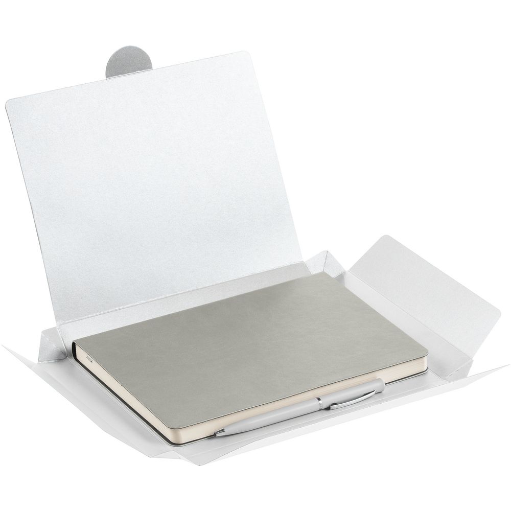 Недатированный ежедневник с гибкой обложкой из материала Latte с ляссе в цвет обложки, а также ручка в тон — в подарочной коробке из дизайнерского картона.