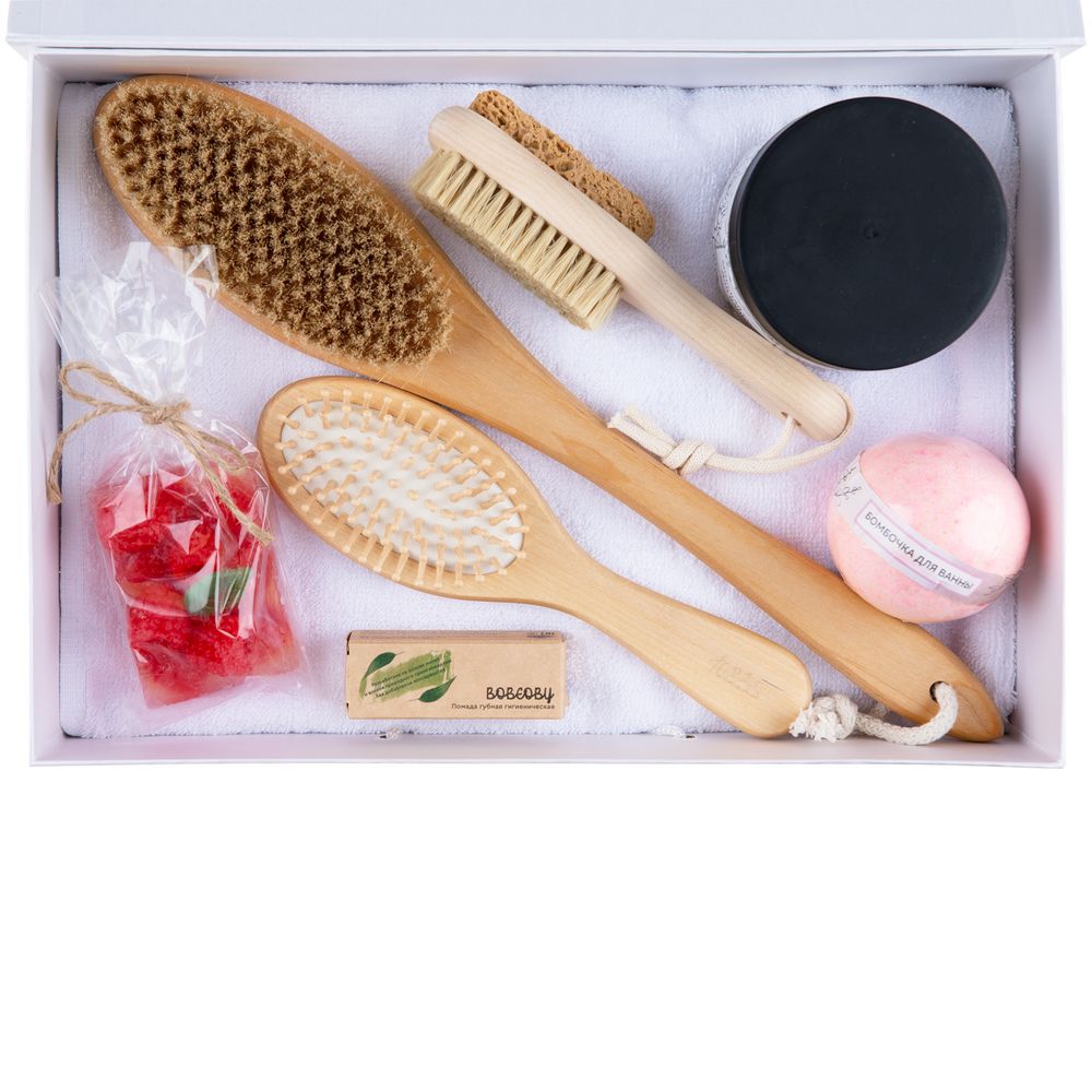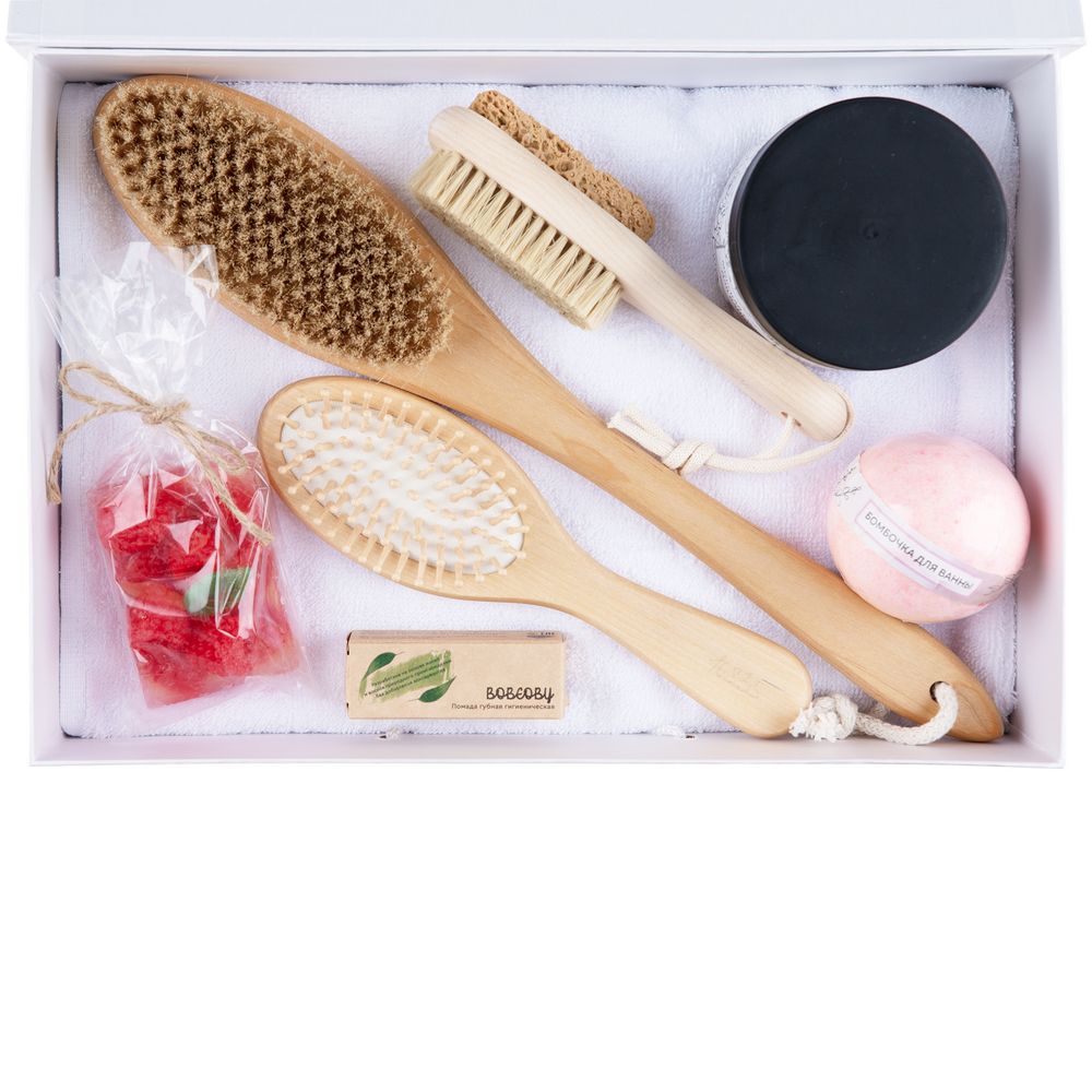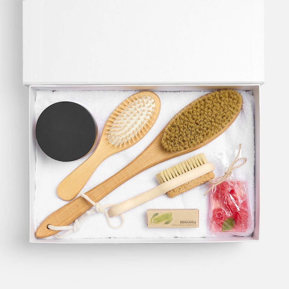 Материал: | полотенце - хлопок 100%; щетки и расческа - дерево; коробка - переплетный картон |