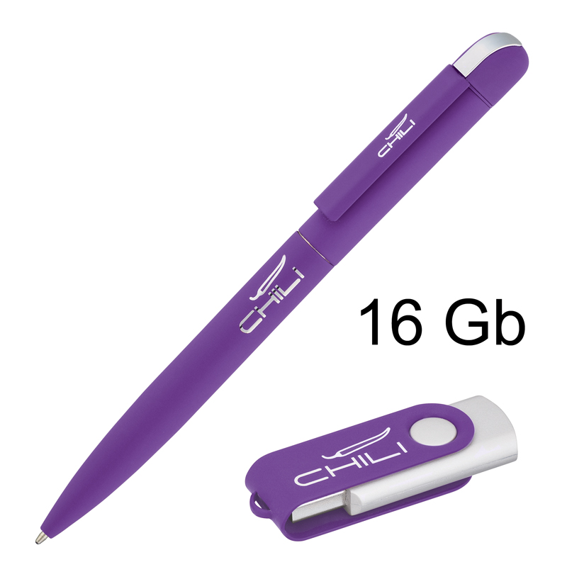 Набор ручка + флеш-карта 16 Гб в футляре, покрытие soft touch