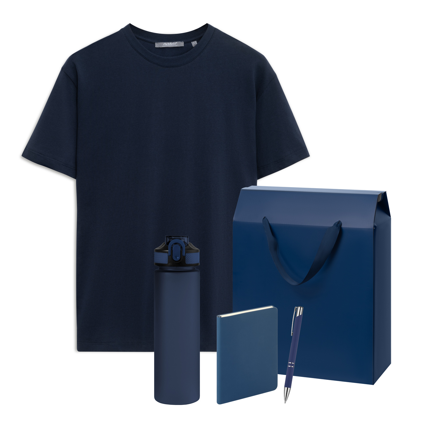 Набор с одеждой KRIS (футболка, бутылка, ежедневник, ручка), синий, XL