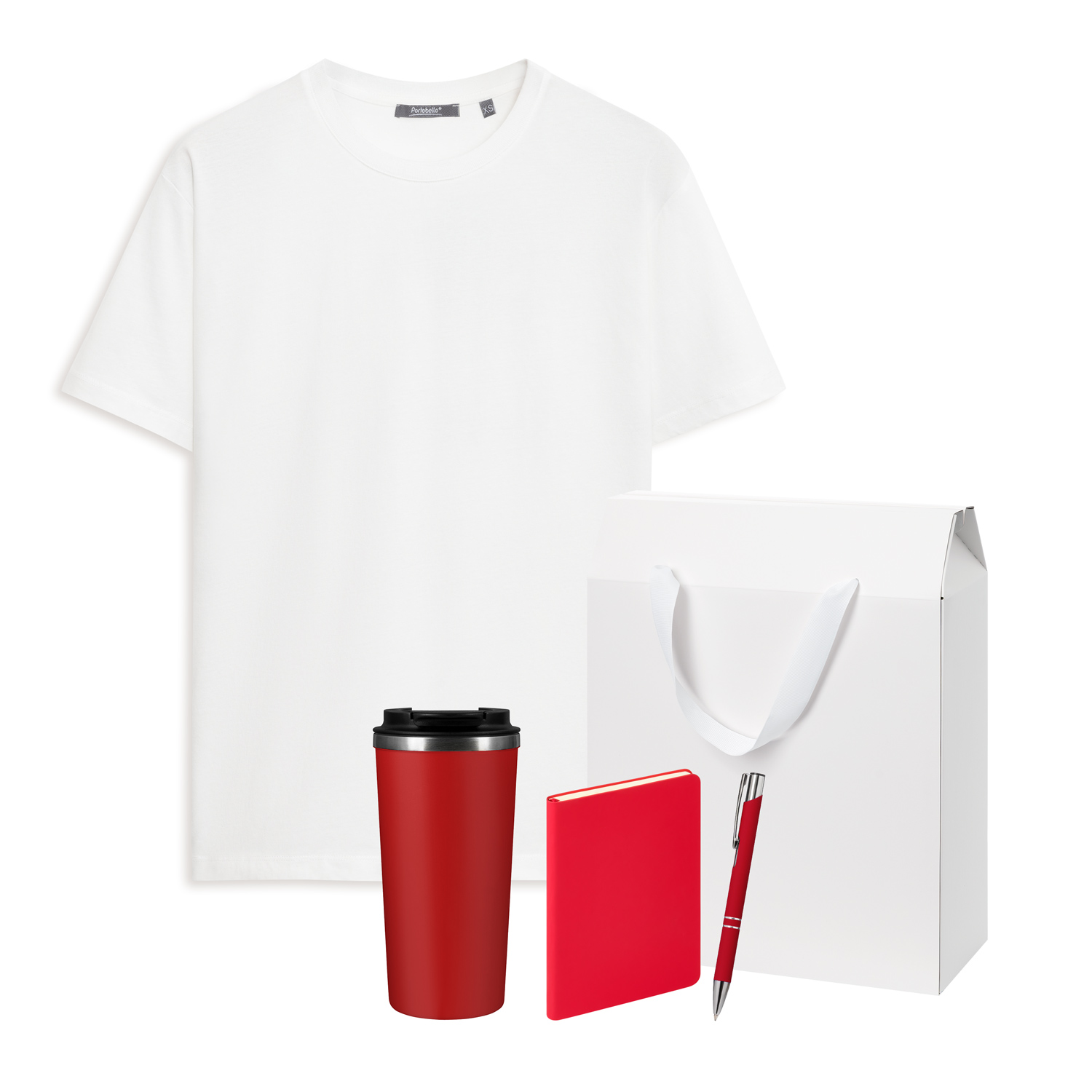 Набор с одеждой KRIS (футболка, термокружка, ежедневник, ручка), красный/белый, XL