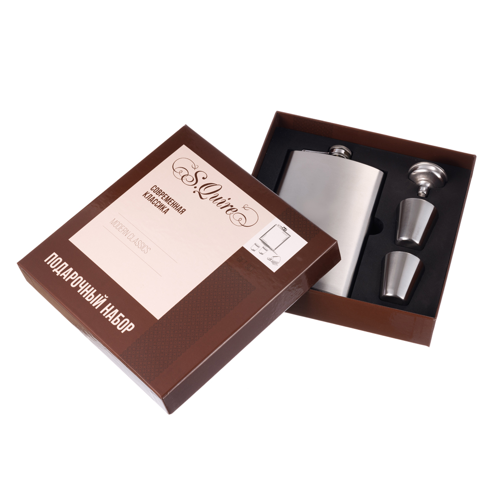 Набор S.Quire фляга 0,27 л, 2 стопки, воронка, сталь, серебристый