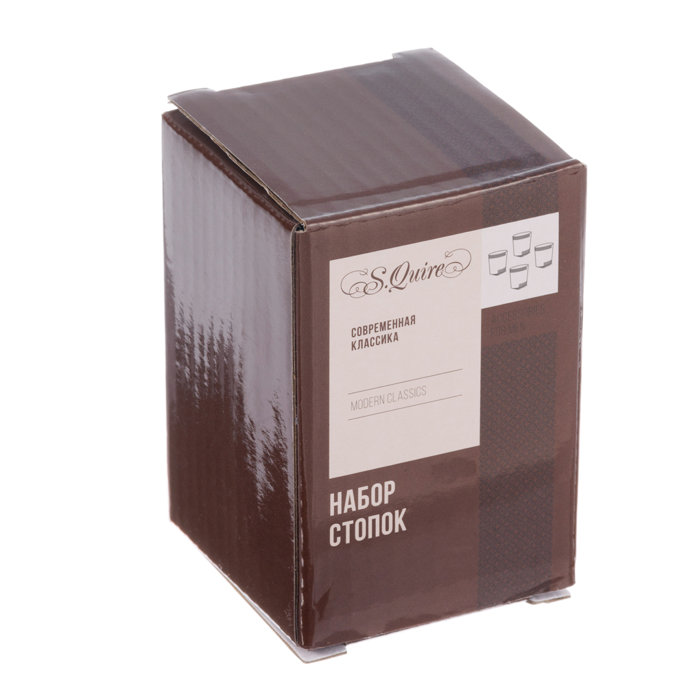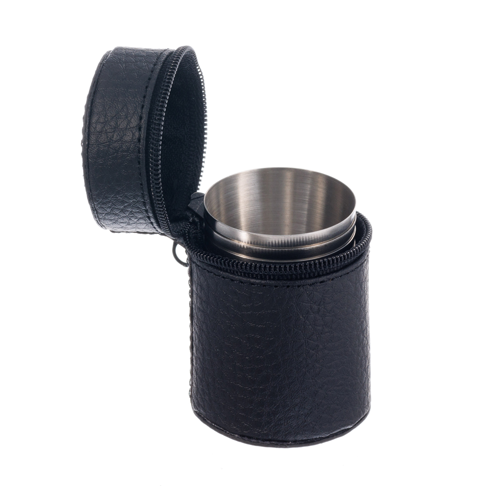 Набор S.Quire из 4 стопок серебристого цвета 0,03 л, из стали 304SS в чехле из искусственной кожи