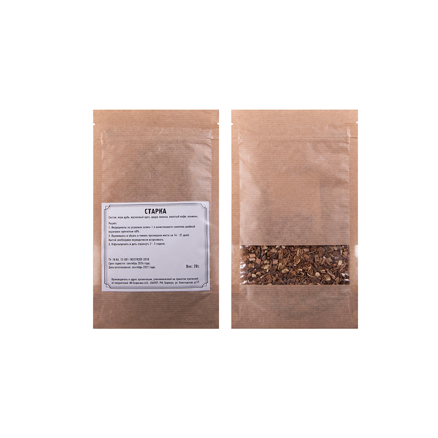 Набор для приготовления 1 литра напитка «Старка». В состав набора входят: - набор трав и специй "Старка" (кора дуба, мускатный орех, цедра лимона, молотый кофе, ванилин), - бутылка 1 л, - пробка Т-образная, - стружка бумажная, - коробка подарочная арт. 34930, размер 30 х 25 х 15 см