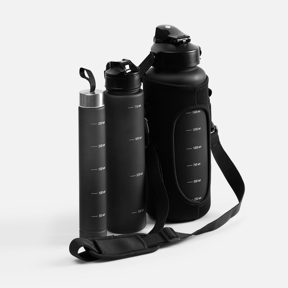 «Папа-мама-я — спортивная семья!». Набор спортивных бутылок Aquapack — настоящая находка: он включает в себя три емкости разного объема, вложенные одна в другую по принципу матрешки. Эти прочные и эстетичные бутылки с черным матовым покрытием подойдут для тренировок, спортивных мероприятий, туристических походов и семейных пикников на природе.