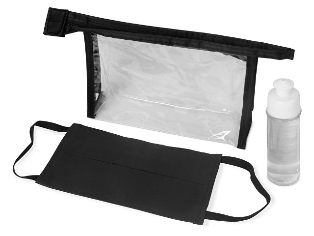 Самое необходимое всегда под рукой - в любом месте и при любой ситуации. Многоразовая хлопковая маска черного цвета и антисептик в стильной пластиковой косметичке поместятся в любой сумке. Тампопечать (1 цвет (цветные изделия)) на данный товар осуществляется бесплатно. Оплачивается только настройка оборудования в размере 4500 рублей на весь тираж.