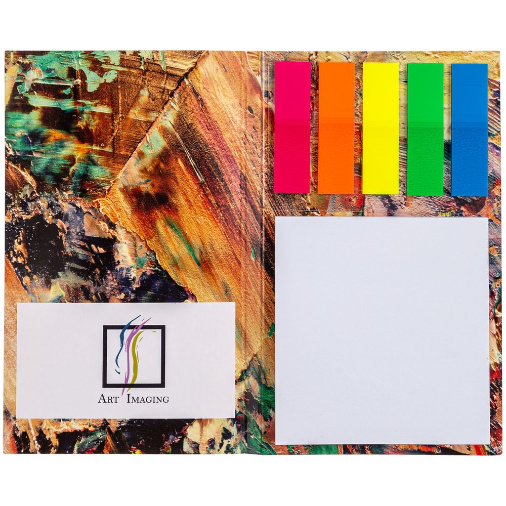 Блок для заметок с липким краем и стикеры-закладки ярких неоновых оттенков, собранные под одной цветной обложкой, — практичный набор, который всегда под рукой.