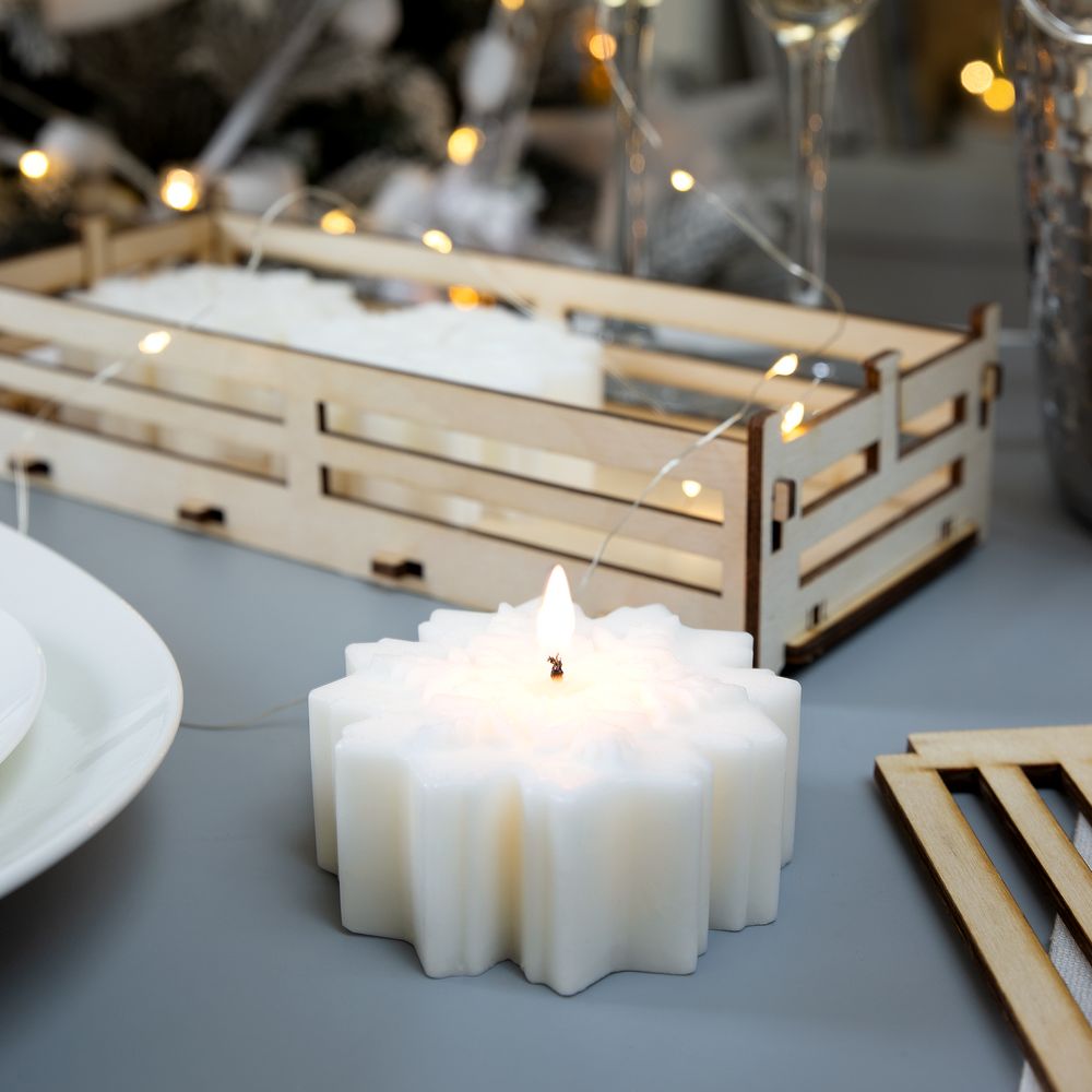 Набор из 3 свечей в ящике. Каждая снежинка упакована в отдельный полиэтиленовый пакет.