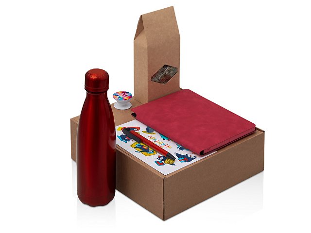 | Материал: | бутылка - нержавеющая сталь, ручка - металл, пластик, блокнот- полиуретан, FSC бумага, держатель для телефона - пластик, чай - крафт-пакет, коробка - картон |