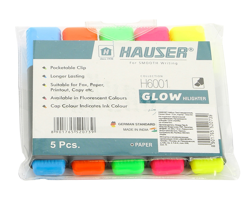 Набор: Текстовыделитель Hauser Glow - 5шт