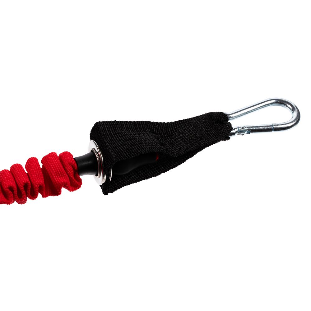 Каждый эспандер оснащен надежным металлическим карабином с дополнительным фиксатором, который обеспечит безопасность при выполнении упражнений и будет способствовать плавному натяжению резинки. Инвентарь можно закрепить на двери при помощи дверного анкера (в комплекте) и добавить в тренировку больше разных упражнений.