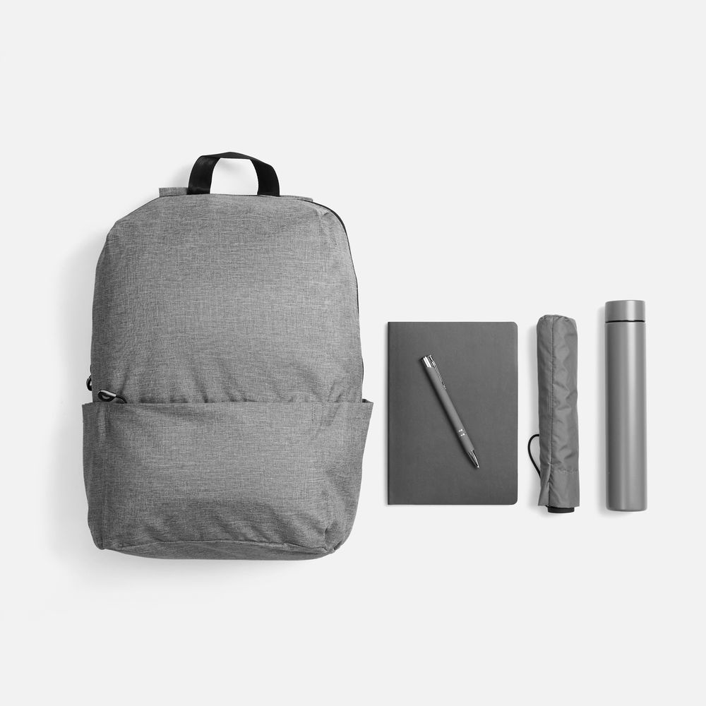 Размер ШВГ: | рюкзак: 27x40x14 см; зонт: длина 49 см, диаметр купола 90 см, длина в сложении 22 см; термобутылка: высота 23,5 см, диаметр 4,3 см; блокнот: 15,5х21х1 см; ручка: 13,7х0,8 см |