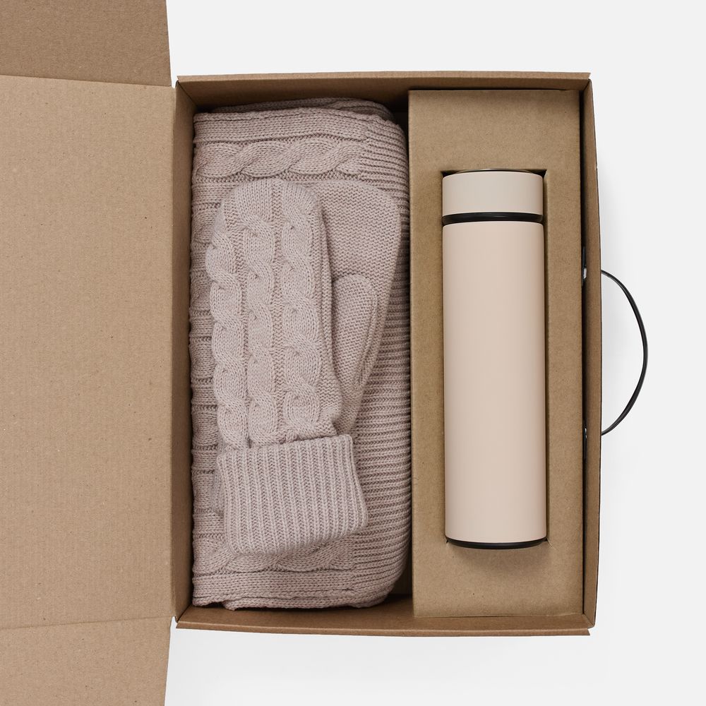 Материал: | шарф, варежки - акрил 100%; термос - нержавеющая сталь, 304; покрытие софт-тач; коробка - микрогофрокартон |