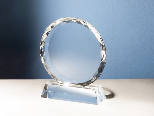 Награда имеет форму монеты с огранкой, за счёт чего интересно переливается в лучах света. Сама монета и основание выполнены из прозрачного стекла.