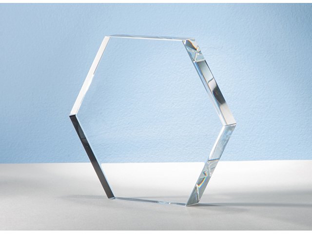 Награда выполнена из прозрачного стекла и не имеет постамента. Форма шестигранника часто встречается в природе, например, в пчелиных сотах, и является символом гармонии и изобилия.