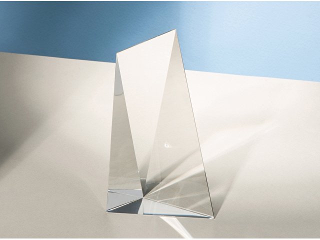 Награда имеет очень необычную, напоминающую нечто космическое, форму. Награда выполнена из прозрачного стекла и имеет широкие грани, благодаря чему персонализация на ней смотрится оригинально и эффектно.