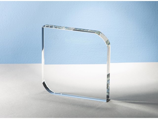 Награда выполнена из прозрачного стекла, не имеет постамента и никаких отвлекающих деталей. Минималистична и лаконична.