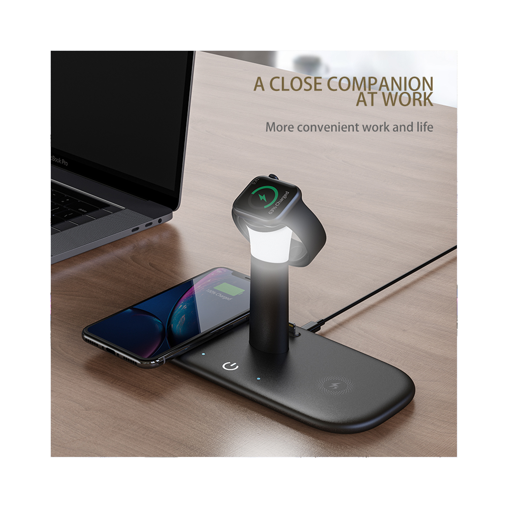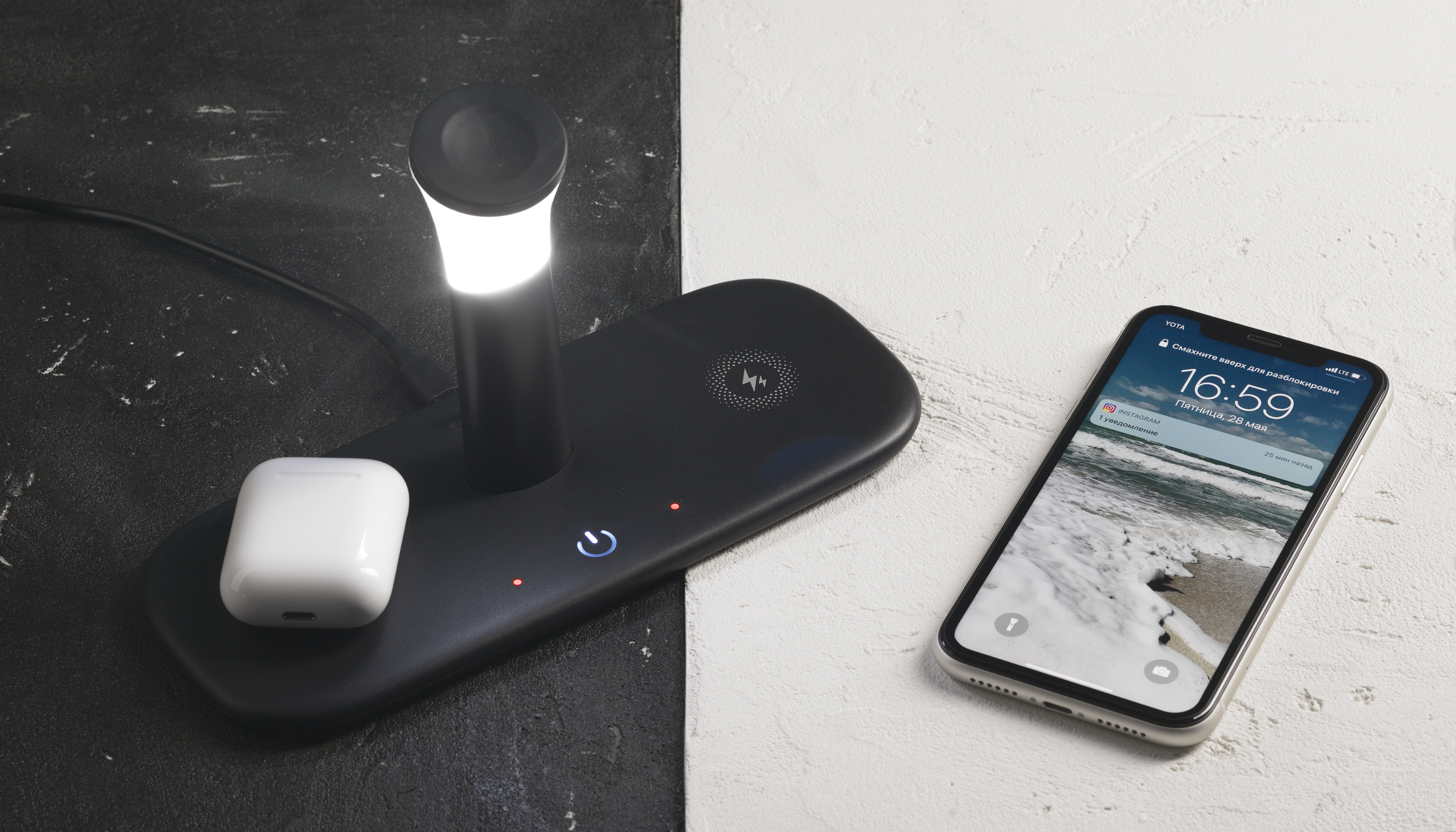 Настольная беспроводная (15W) зарядная станция "Bridge" для часов, наушников, смартфонов, с лампой