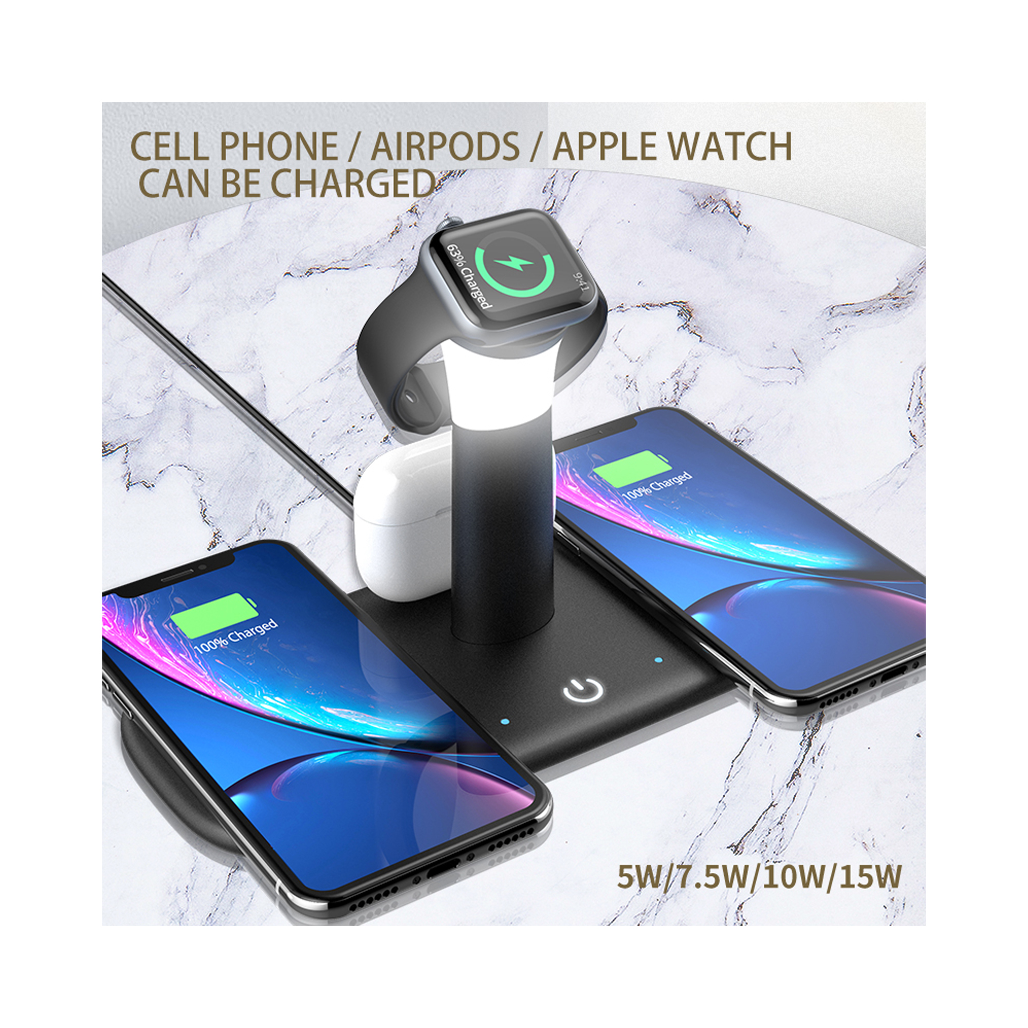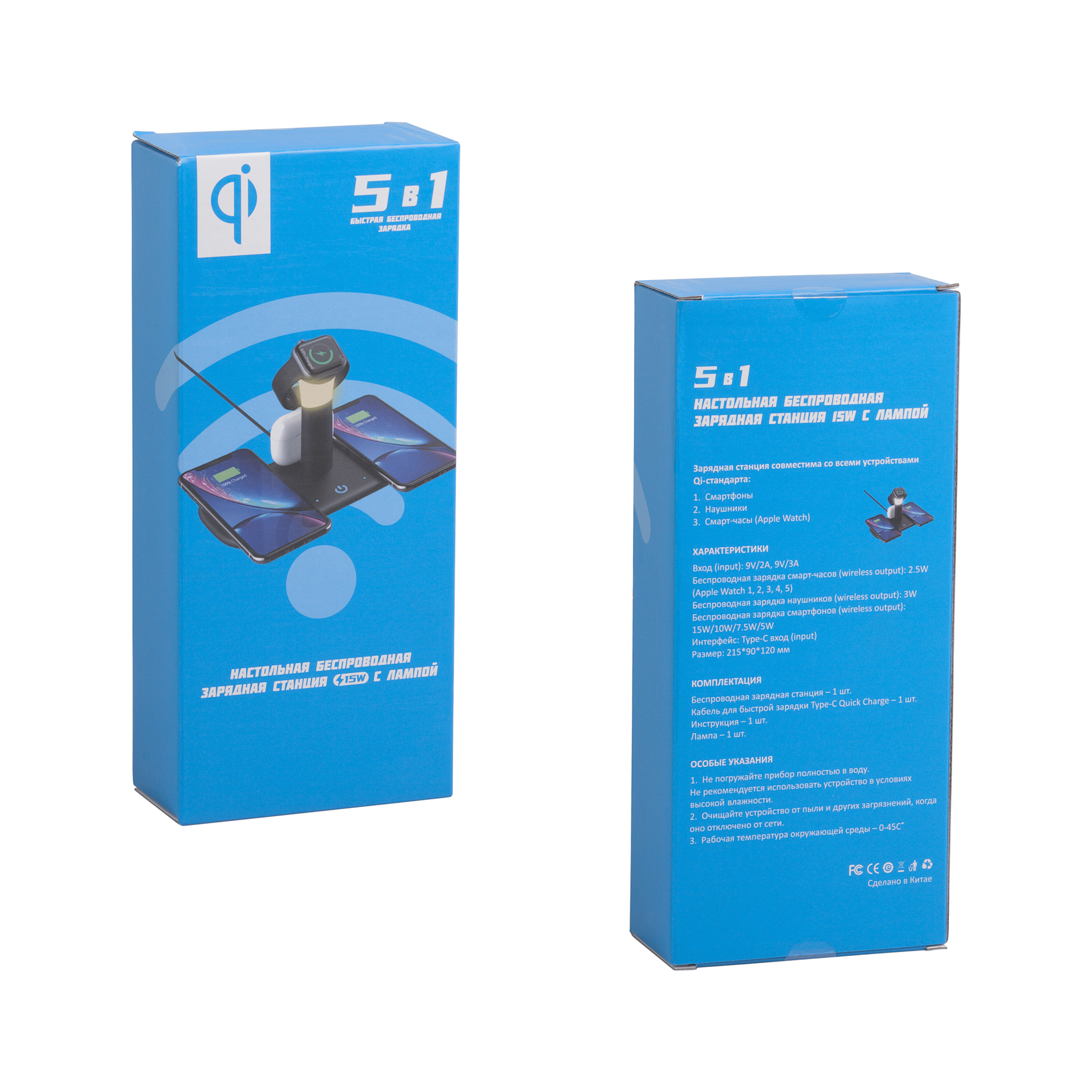 Настольная зарядная станция - это компактное решение для одновременной быстрой 15W беспроводной зарядки смарт-часов (Apple watch), наушников и смартфонов. У лампы доступны 2 режима освещения: холодный свет и теплый свет. В каждом из режимов можно регулировать яркость света. Блок быстрой (до 15W) беспроводной зарядки смартфона обозначен двумя молниями; блок, обозначенный одной молнией, заряжает с мощностью 5W. Желательно перед использованием ознакомиться с инструкцией.