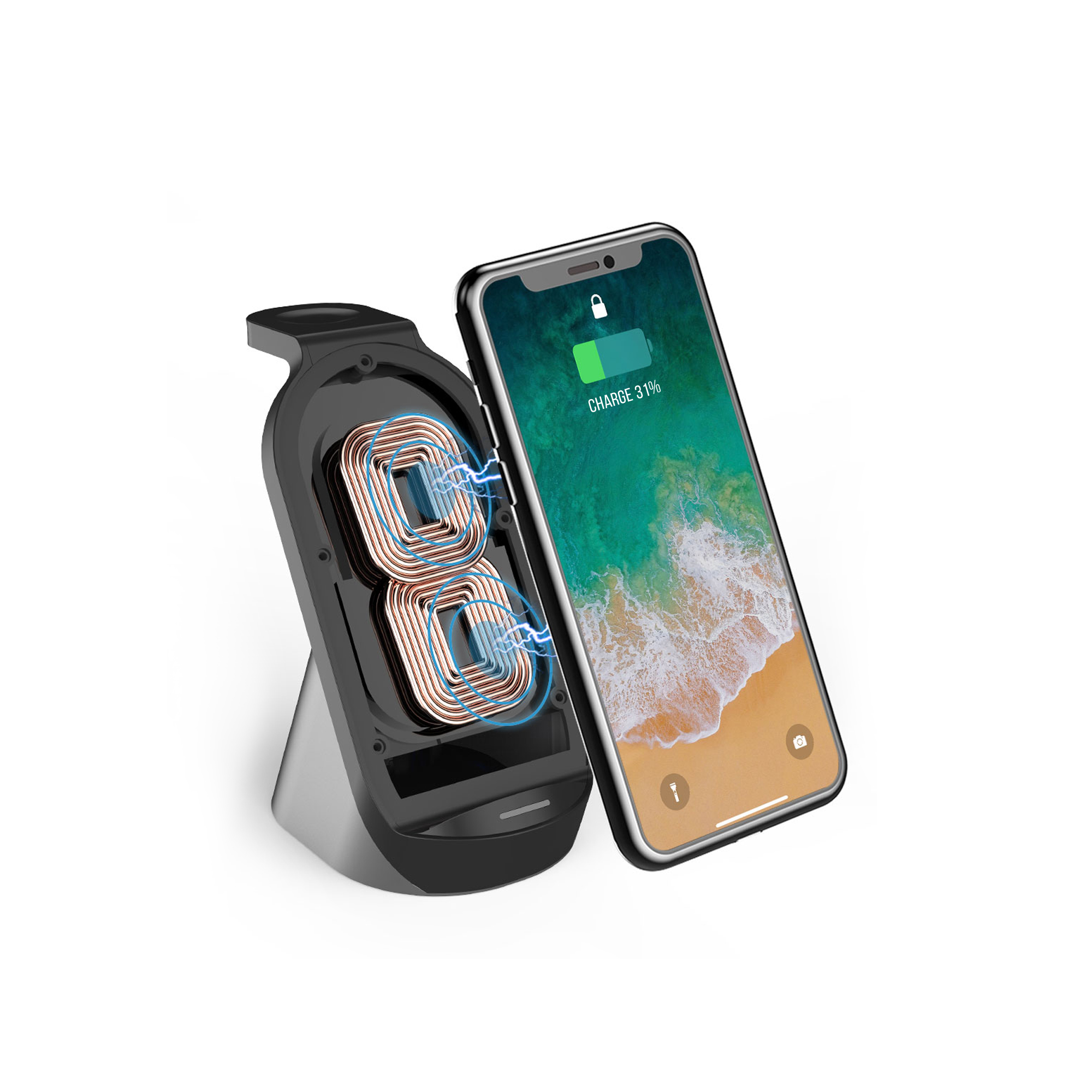 Зарядная станция совместима со всеми мобильными устройствами Qi-стандарта.