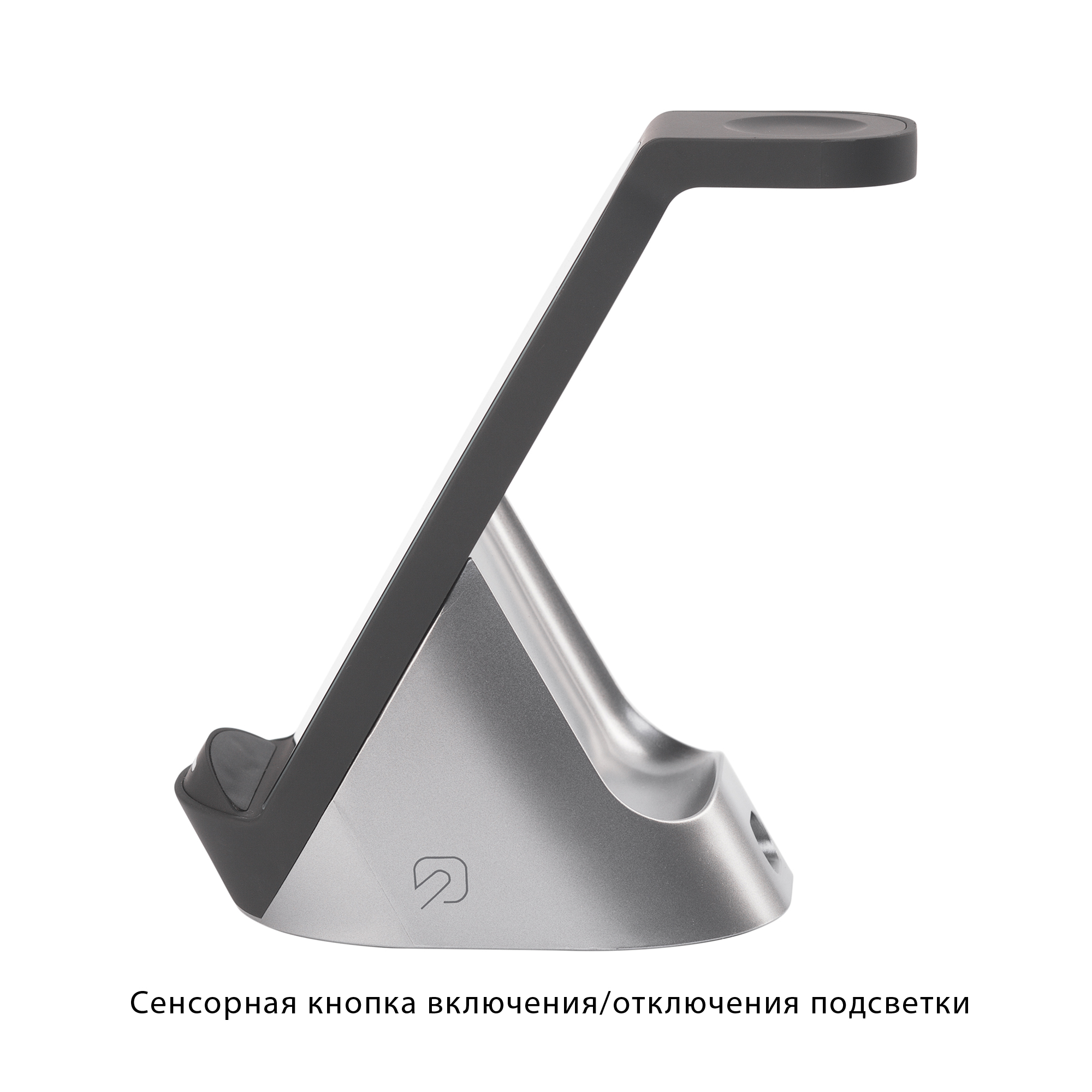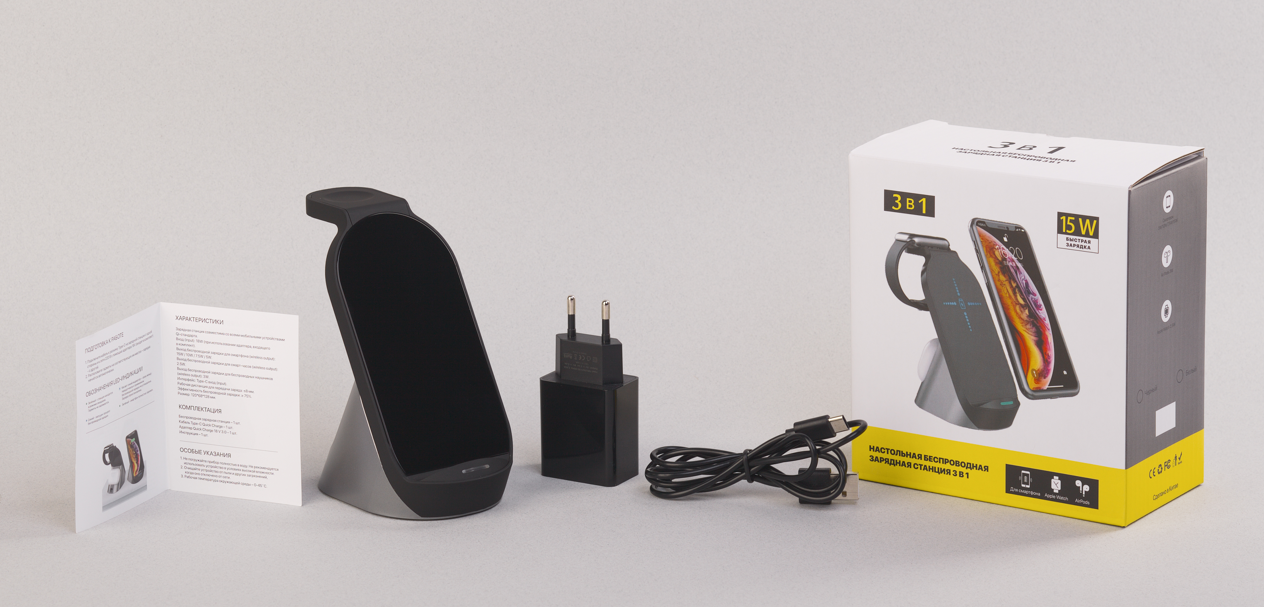 Настольная зарядная станция - это компактное решение для одновременной быстрой беспроводной зарядки смарт-часов (Apple watch), наушников и смартфона. Размещение логотипа с эффектной синей подсветкой возможно на панели зарядки смартфона (методом гравировки газовым лазером СО2). Смартфон может заряжаться как в вертикальном, так и в горизонтальном положении. Рекомендуем перед использованием ознакомиться с инструкцией.