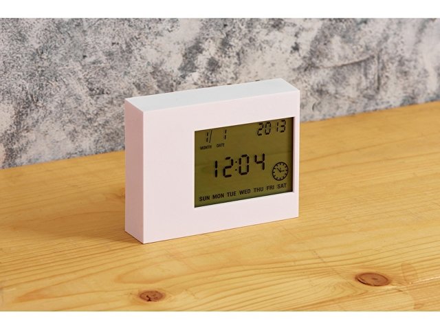 Многофункциональные настольные часы с подсветкой, которые в зависимости от положения показывают разные значения: дата и время, будильник, таймер и температура воздуха. Тампопечать (1 цвет (белые изделия)) на данный товар осуществляется бесплатно. Оплачивается только настройка оборудования в размере 4500 рублей на весь тираж.