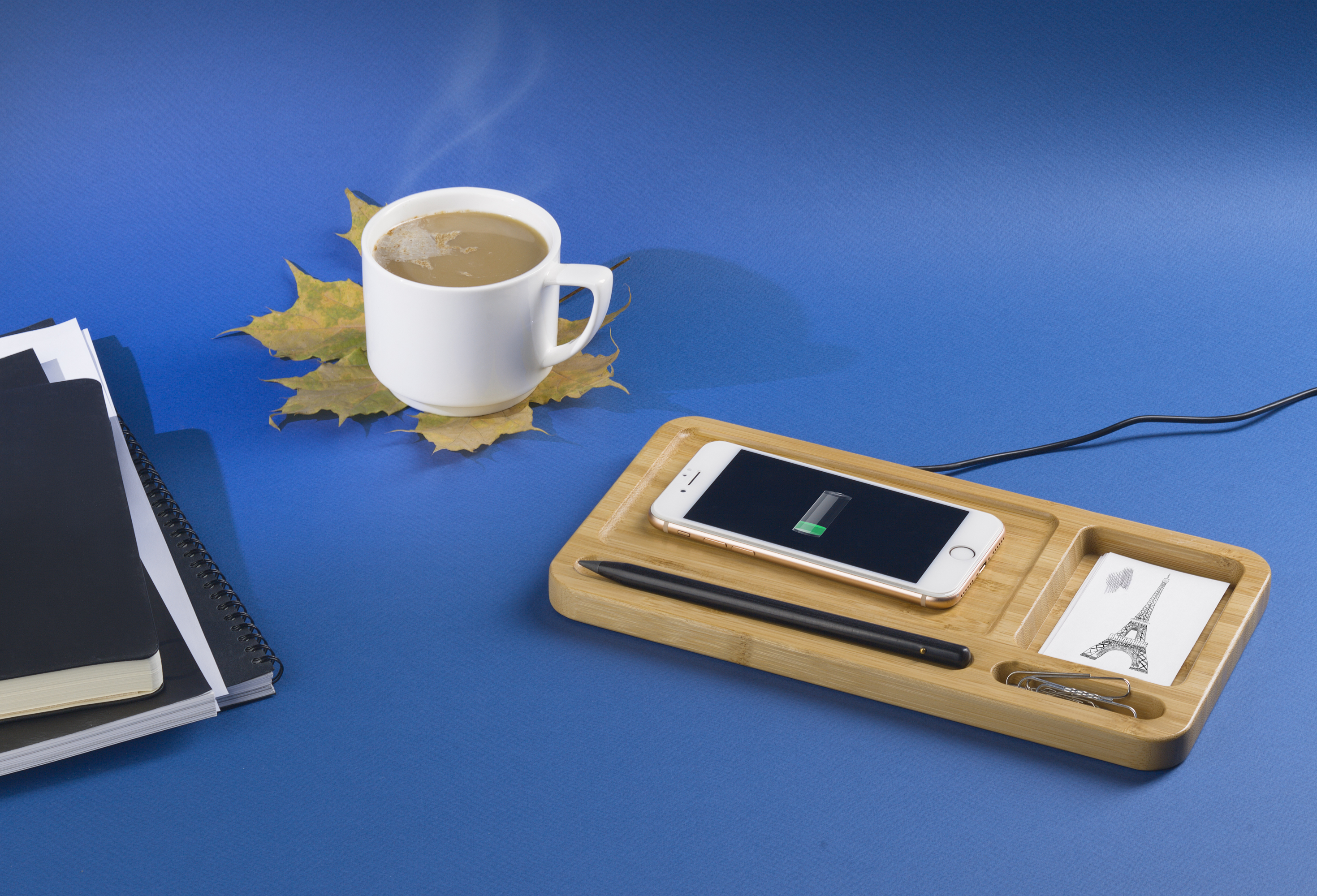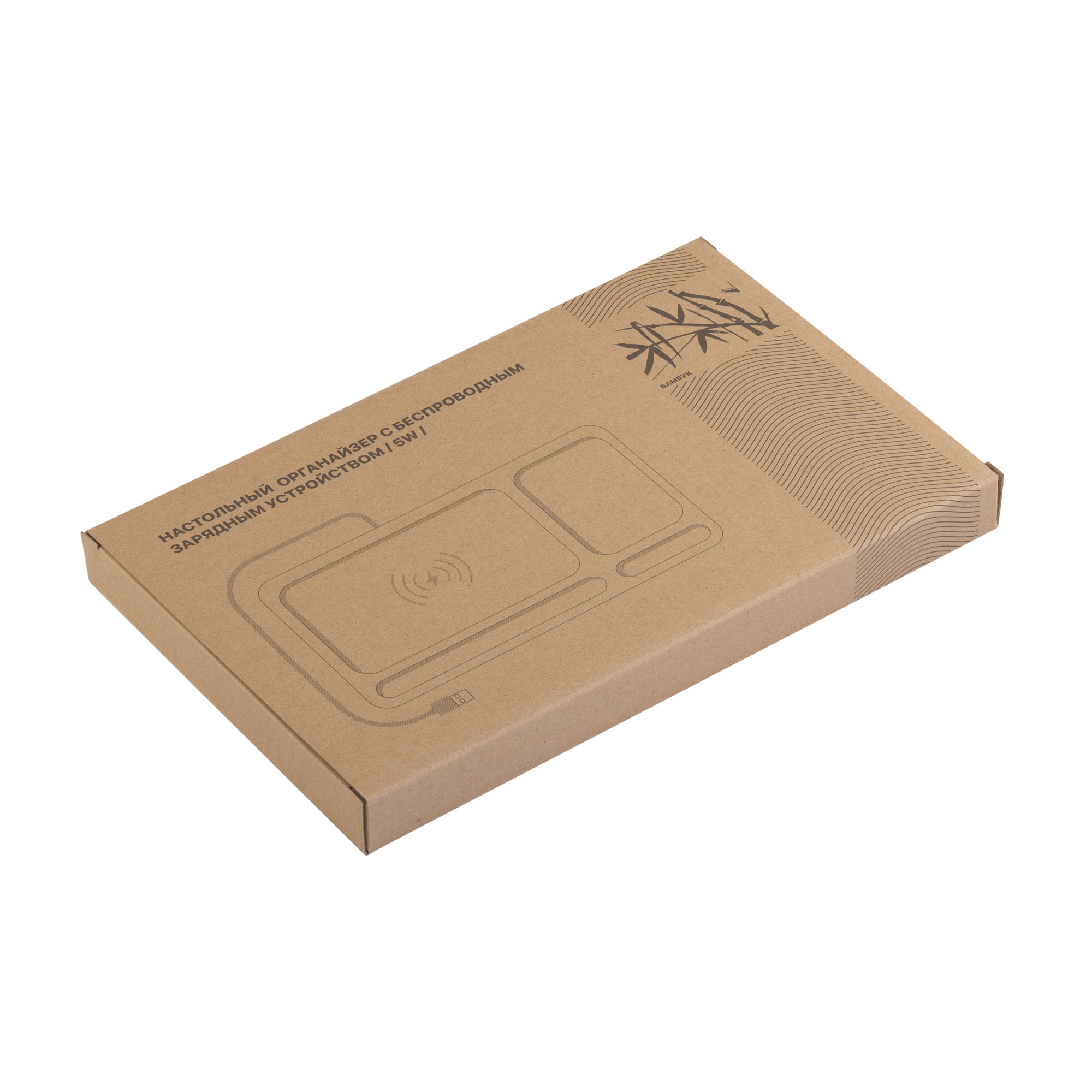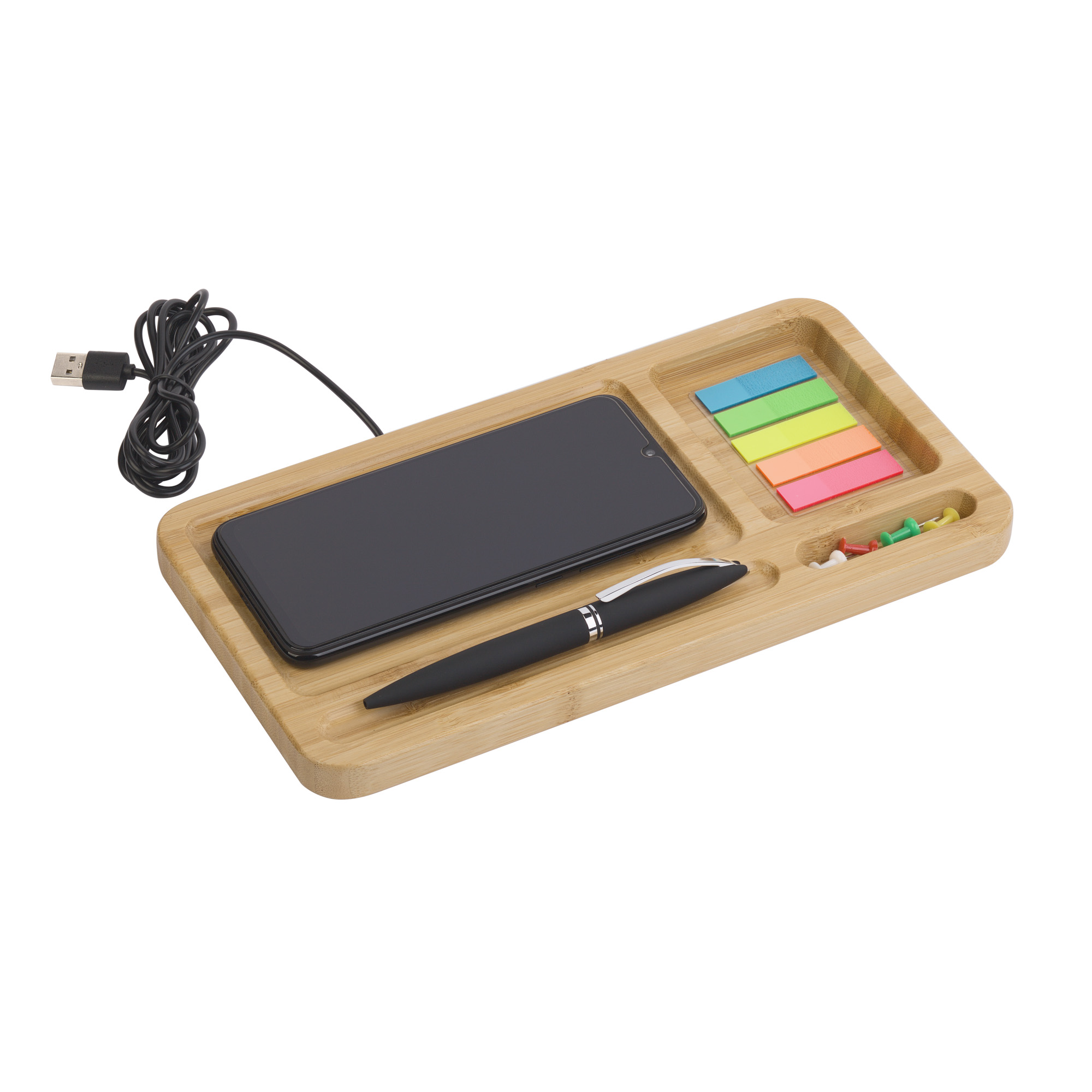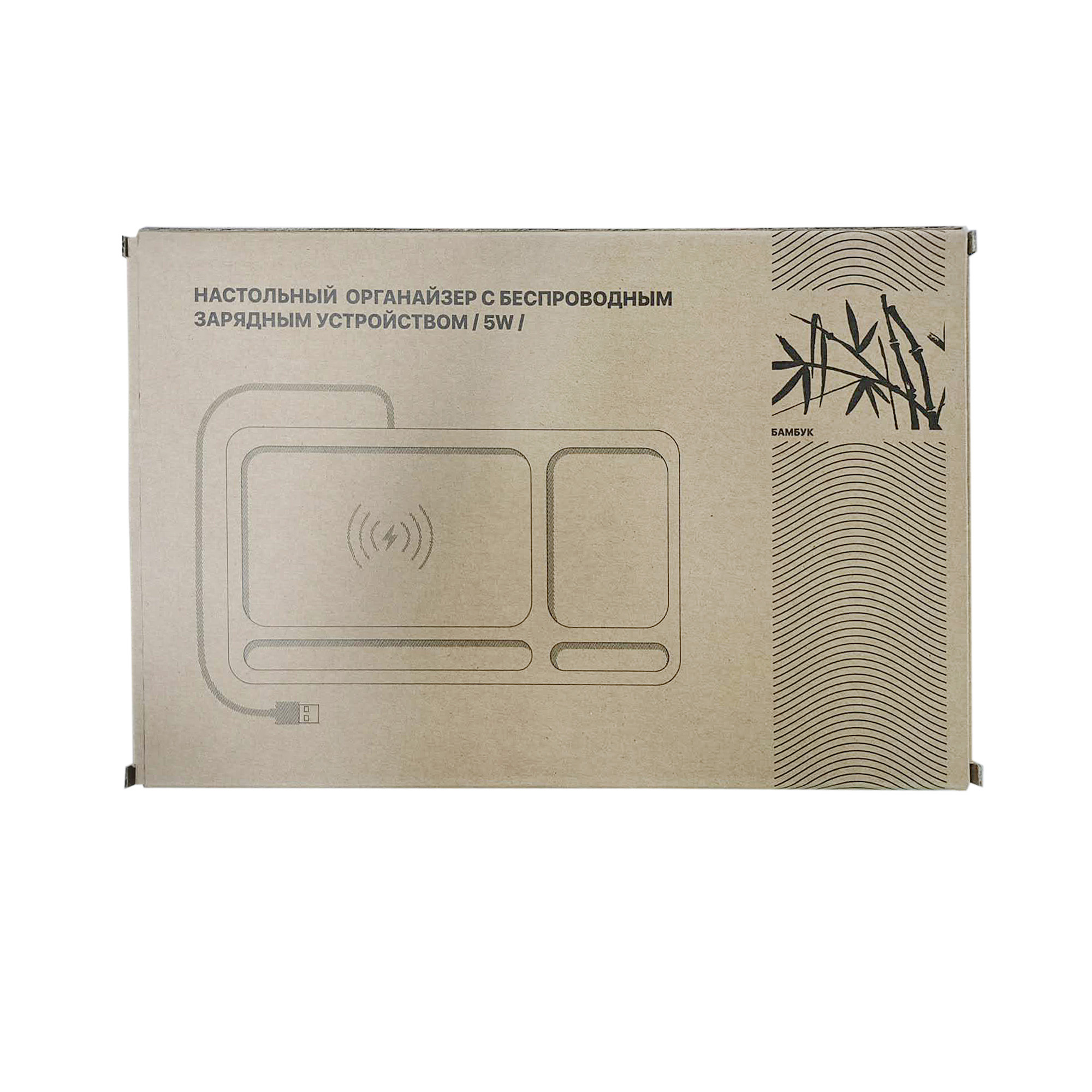 Настольный органайзер "Woodstock" с беспроводным зарядным устройством, бамбук