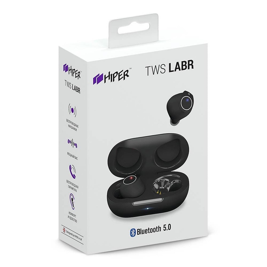 Наушники беспроводные с зарядным боксом HIPER TWS LABR, цвет черный