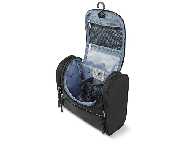 Функциональная организация: основное отделение на молнии с 3 сетчатыми карманами, сетчатое отделение на молнии, прозрачное отделение на молнии, крючок для подвешивания, 2 боковых отделения на молнии, передний карман на молнии, ручка.