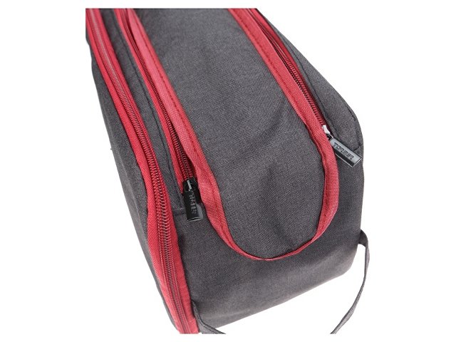 Несессер выполнен в прямоугольной форме, центральное отделение имеет клапан на молнии с двух сторон и магнитной кнопкой на конце. На внешней стороне расположено дополнительное отделение на молнии и включает в себя два сетчатых кармана и три эластичных держателя для мелких предметов.
