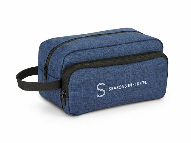 Несессер высокой плотности 300D с ручкой, передним карманом, внутренней подкладкой и молнией. 220 x 115 x 115 мм.