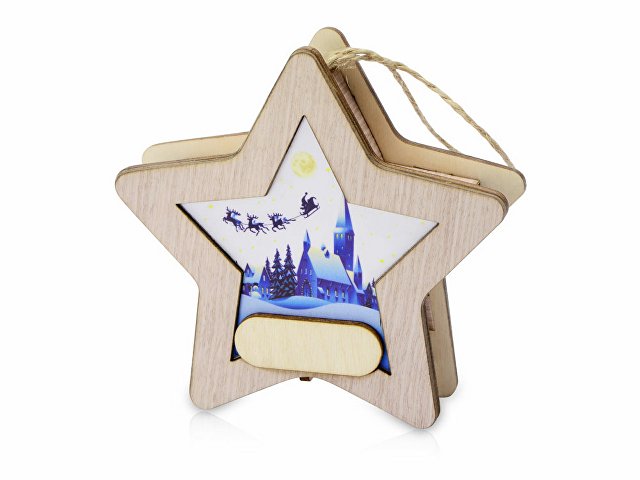 Новогодняя подвеска для елки станет прекрасным вариантом подарка: посмотрите, эти игрушки видно не только при свете дня, но и в темноте, ведь они могут светить сами! Игрушка с подсветкой выполнена из фанеры, фрагмент с изображением — напечатан на пропускающем свет материале. Подвеска сияет мягким разноцветным светом, подчеркивая пейзаж. Станет прекрасным вариантом для подарка, который будет радовать ваших адресатов долгие годы, каждую зиму красуясь на зеленых лапах елки. Гравировка (CO2 лазер) (Без чернения) на данный товар осуществляется бесплатно. Оплачивается только настройка оборудования в размере 1100 рублей на весь тираж.