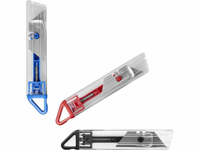 Нож с автоматически выдвигающимся лезвием. Длина лезвия 6 см. Тампопечать (1 цвет (цветные изделия)) на данный товар осуществляется бесплатно. Оплачивается только настройка оборудования в размере 4500 рублей на весь тираж.