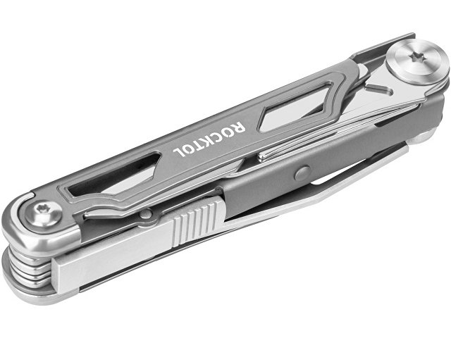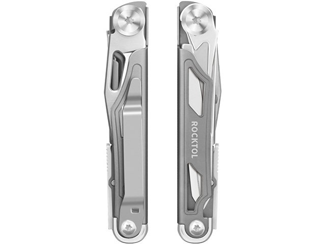 Складной карманный нож Rocktol оснащен 12 функциями все в одном, включая лезвие ножа длиной 2,68 дюйма, большие ножницы, отвертки Phillips № 1 и 3/16 дюйма, отвертки с прорезями и для стаканов, открывалки для банок и бутылок, устройство для снятия проволоки, шило, линейки и встроенный зажим для кармана.