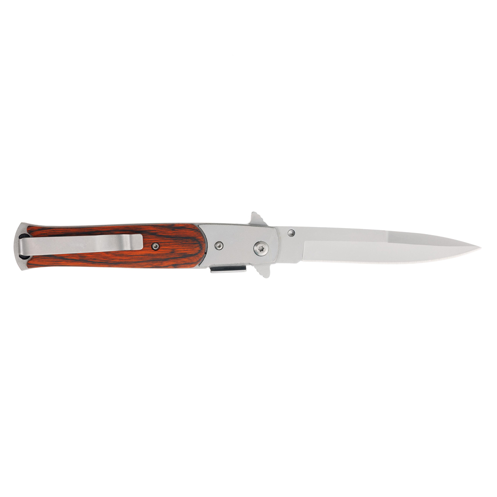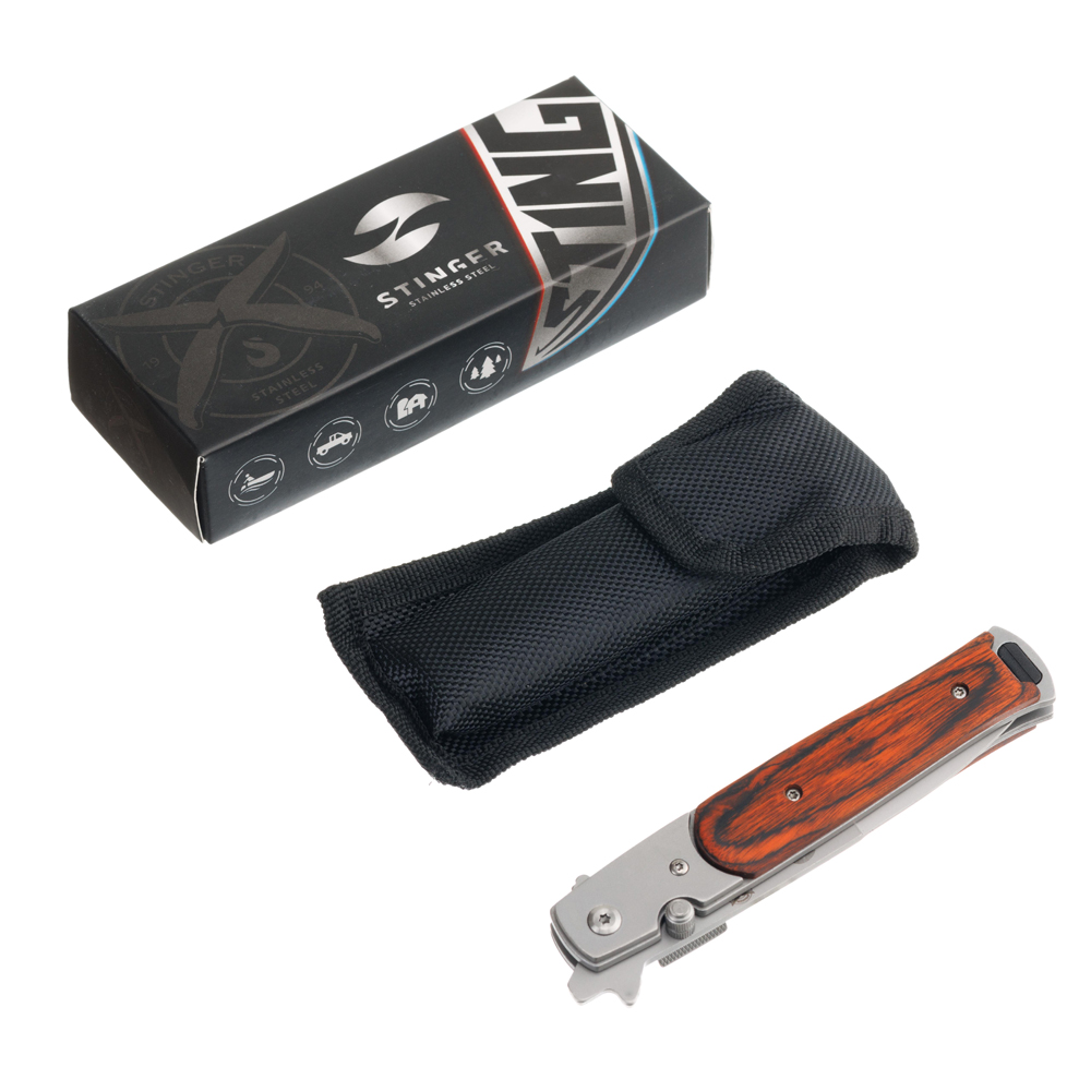 Нож складной Stinger, 100 мм, (серебристый), материал рукояти:сталь/дерево (серебристо-коричневый)