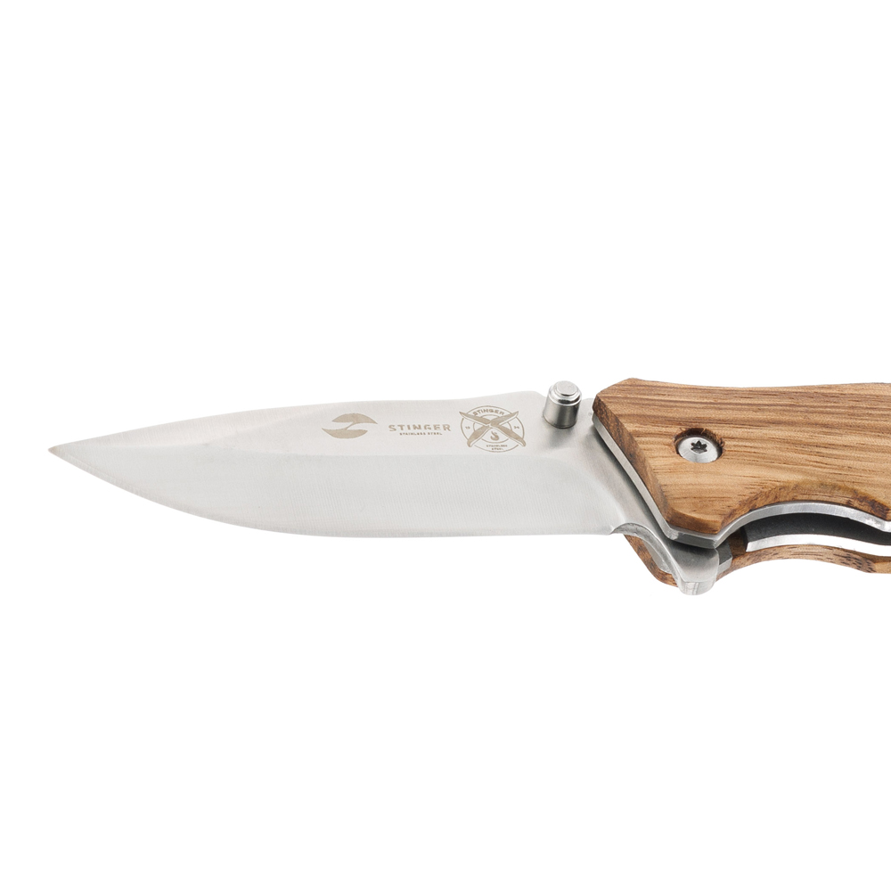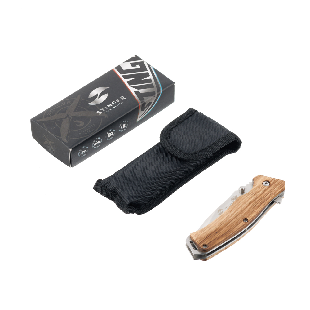 Нож складной Stinger, 110 мм, (серебристый), материал рукояти:дерево/сталь (светло-коричневый)